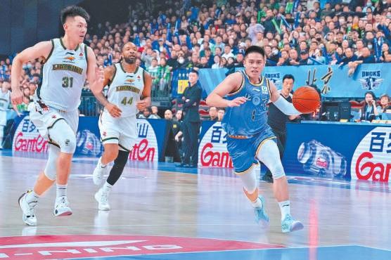 北京北汽队球员陈盈骏(右)带球突破。北京日报记者 刘平摄